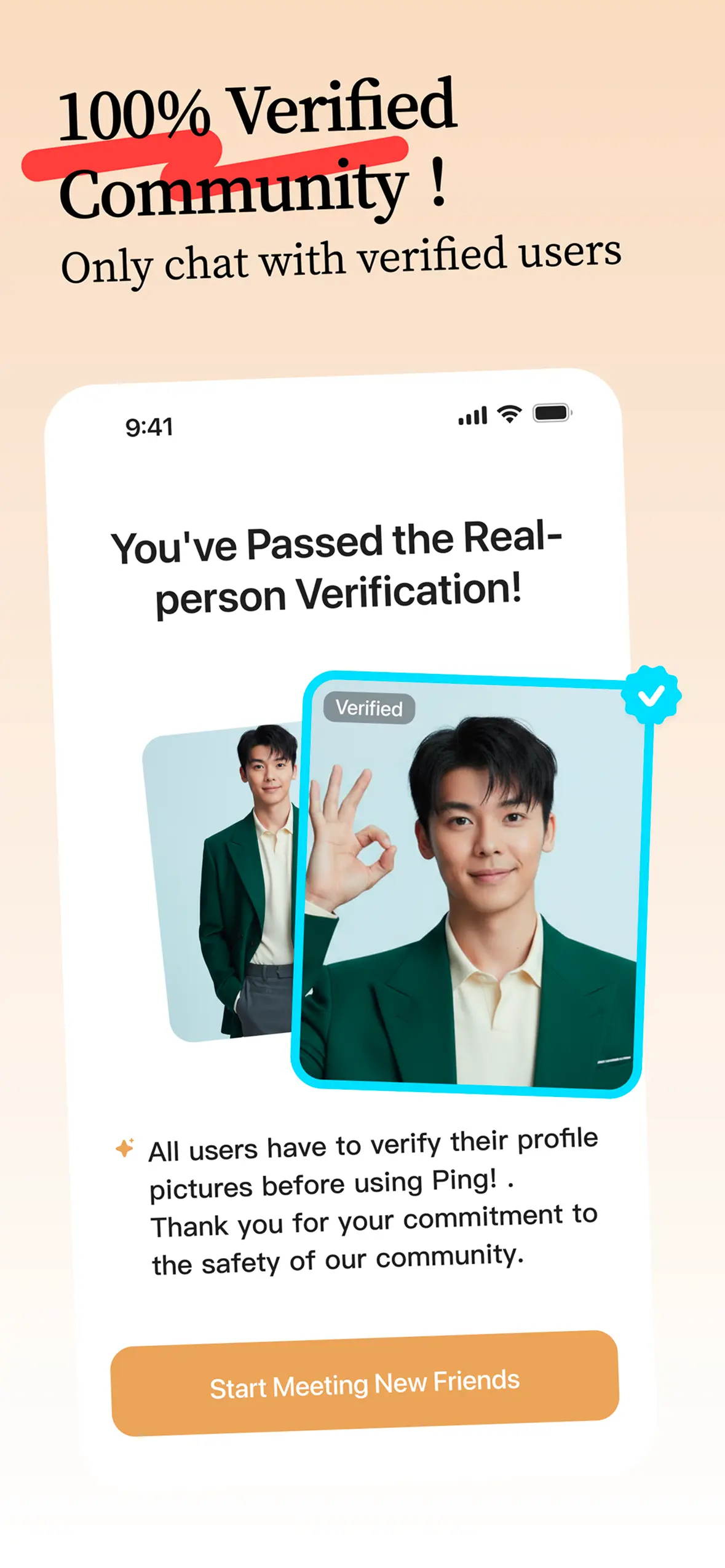 You don't have to worry about fraud or fake accounts here. Ping!'s real-person verification mechanism makes me feel safe. I've met people sharing the same values as me here, and I highly recommend you to give it a try!